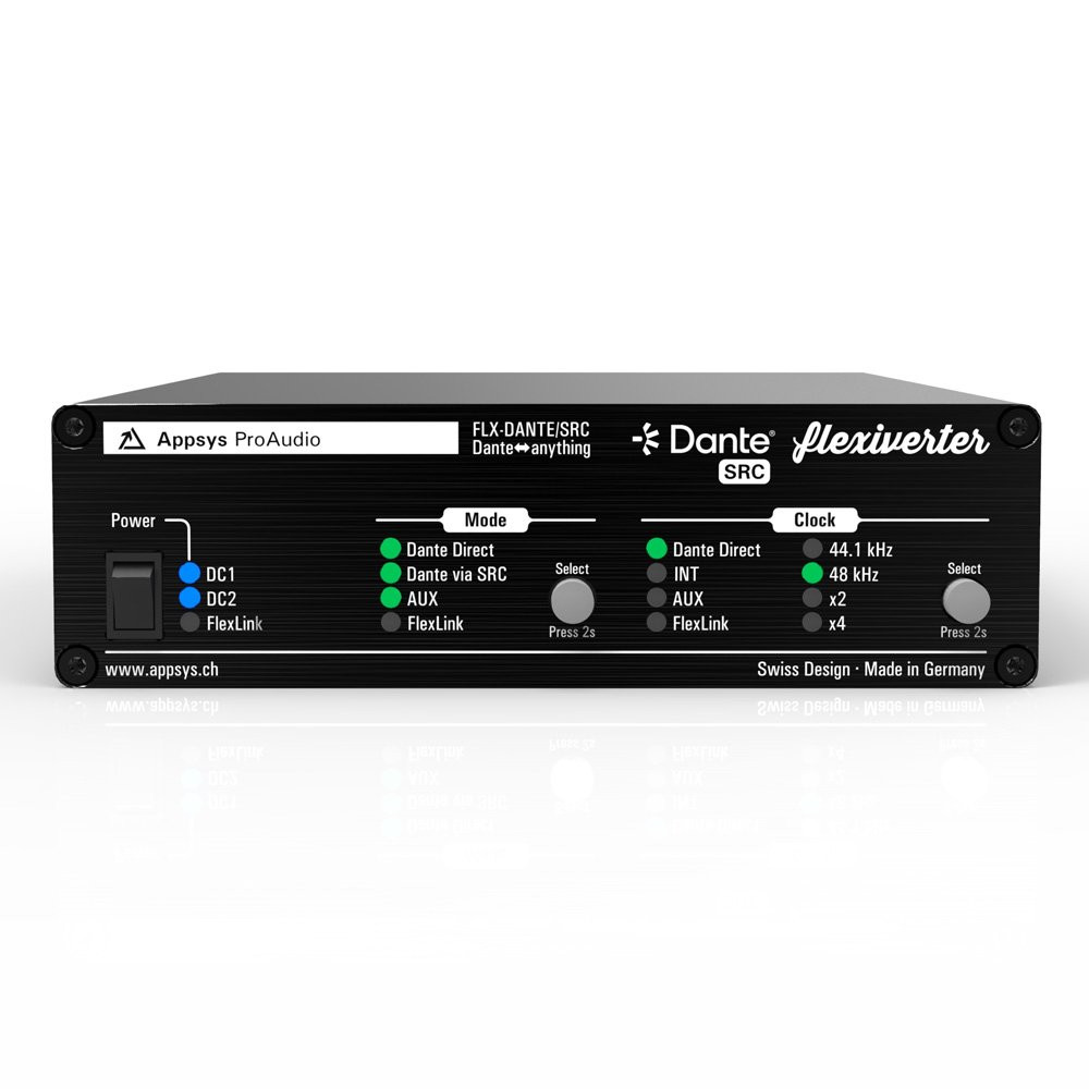 The Appsys Flexiverter range opens up a world of possibilities for conversion between the most common formats, as well as unique pairings and combinations (e. g. AES50 <> Dante, Dante <> Dante SRC, Dante <> AVB).