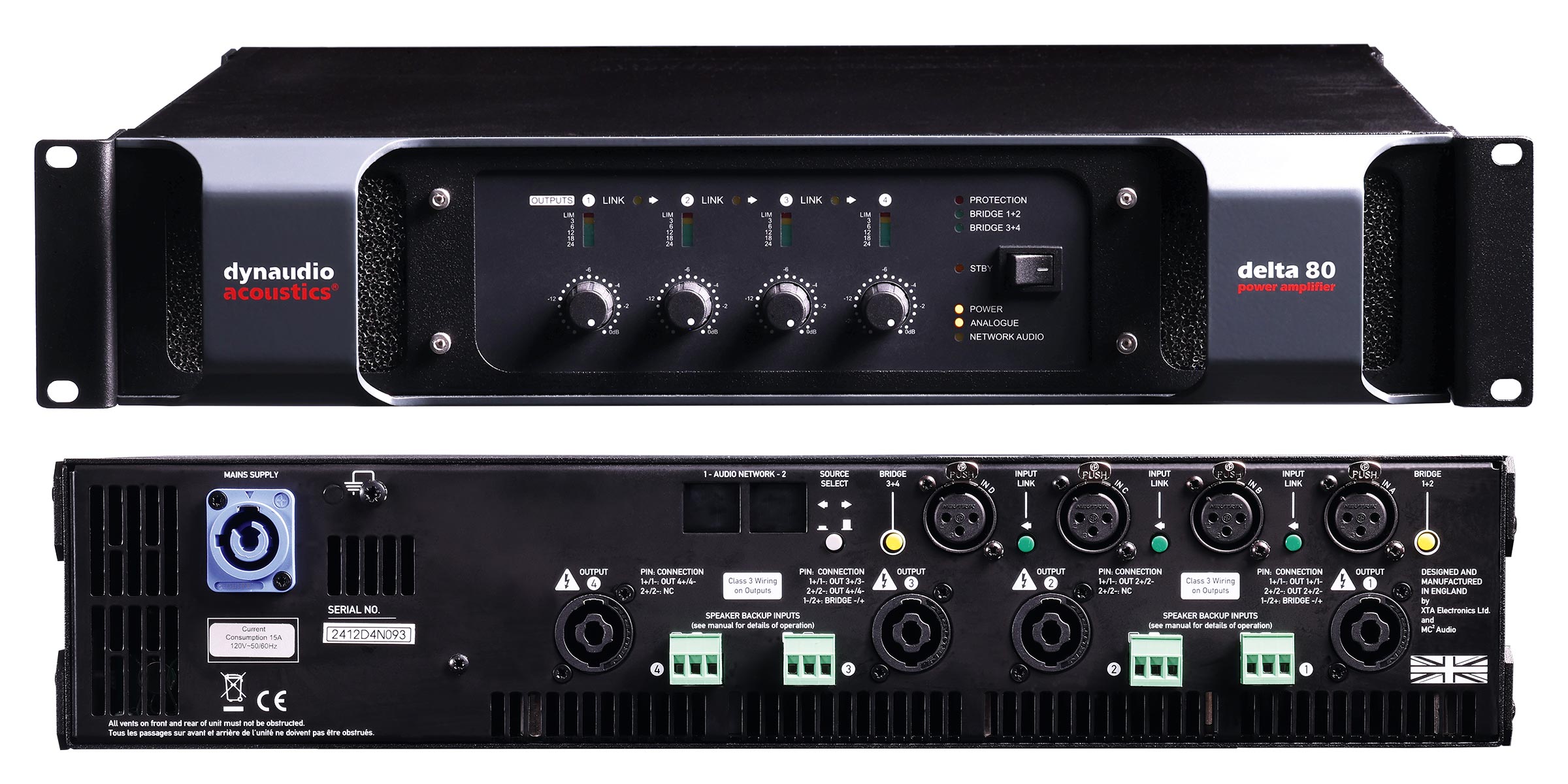 The 2U Delta 80 yields a staggering 4x 2000W of power at 4 ohms – or 2x 4000W when bridged. And it does so without breaking a sweat, while delivering enviably low distortion and noise figures. For instance, THD is as little as <0.18% at 1kHz.