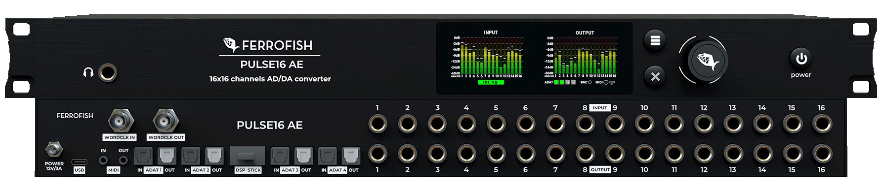 The Ferrofish PULSE16 AE is a versatile and compact AD/DA converter designed for seamless integration into studio or live setups.