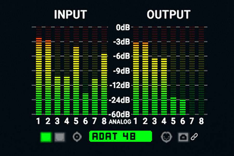 Analogue outputs are also indivudally adjustable in 1 dB steps from +20dBu to -8dBu. Note that the level metering will not change, as output levels are shown pre-attenuation.
