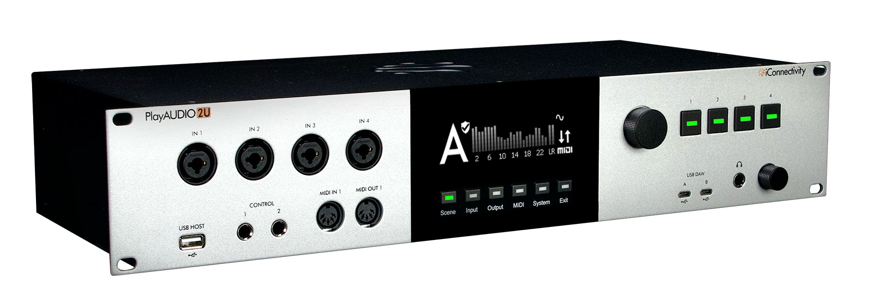 Comprehensive 2U Audio and MIDI Interface for Live Performance