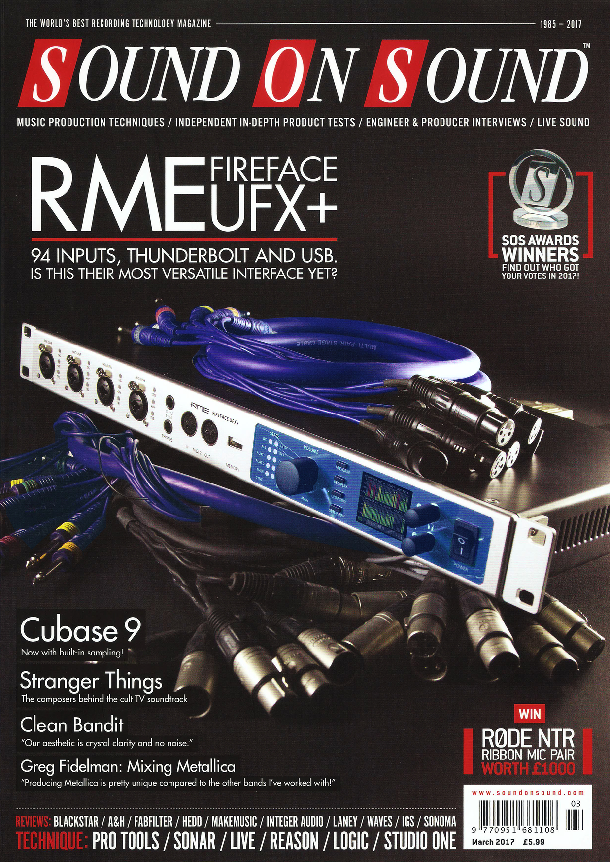 The RME Fireface UFX+ has been given the seal of approval by Sound On Sound, who've provided a comprehensive review of RME's most powerful interface to date in their March 2017 issue (as well as featuring the UFX+ on their front cover). This is the second review from a major pro audio publication, with the UFX+ previously awarded a 10 out of 10 from MusicTech in January earlier this year.