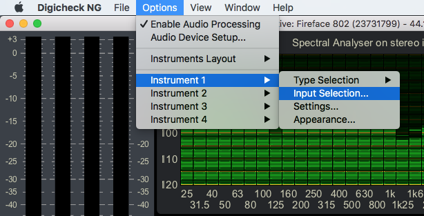 1 – To change which input any of the four Instruments is analysing, go to Options > Instrument 1 > Input Selection.