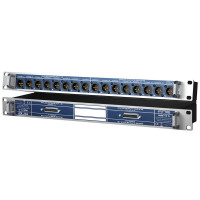 The BOB-16 connects up to 16 XLR inputs and/or 16 XLR outputs (Neutrik connectors) with two D-sub 25-pin connectors. It works like two breakout cables D-Sub from/to XLR. The usual multicore breakout cables are replaced with a 19 rack mount unit, preventing cable chaos, errors and connection problems. The BOB-16 is pin compatible to the common TASCAM pinout format (e. g. used by RME and Digidesign). Adapters to the YAMAHA format are available from RME partner ALVA.